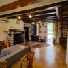 Kitchen/Dining Room - 4.6 x 7m (32.2m²) with exposed beams, tiled floor, freestanding kitchen, wood burning cooker, open fireplace, dual aspect double windows, door to front of property, stairs to first floor and door into…