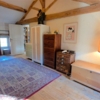 Bedroom 5 - 28m² with carpeted floor, exposed beams, window to gable end, independent door/access to front gravelled gardens and door to…