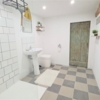 Bathroom with shower, hand basin and ECO Loo